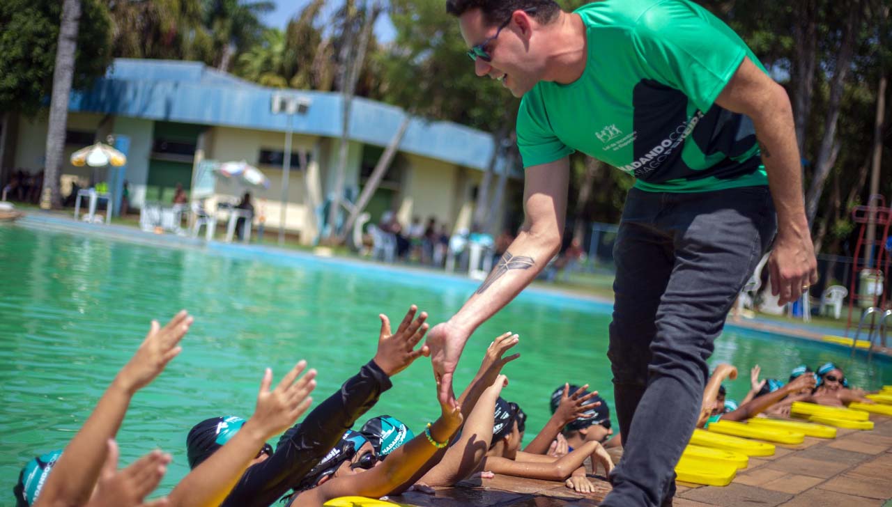 O Nadando com Thiago Pereira, idealizado pelo Instituto Thiago Pereira, oferece desde 2022 aulas gratuitas de natação para crianças e jovens de 7 a 17 anos, com foco em prevenção de afogamentos e acesso ao ensino aquático. Foram 700 alunos atendidos